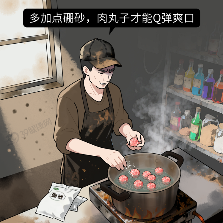 硼砂能和蛋白质结合,形成一种稳定的网络结构,这就是有些便宜肉丸口感也能保持“Q弹、有嚼劲”,卖相诱人的秘诀。