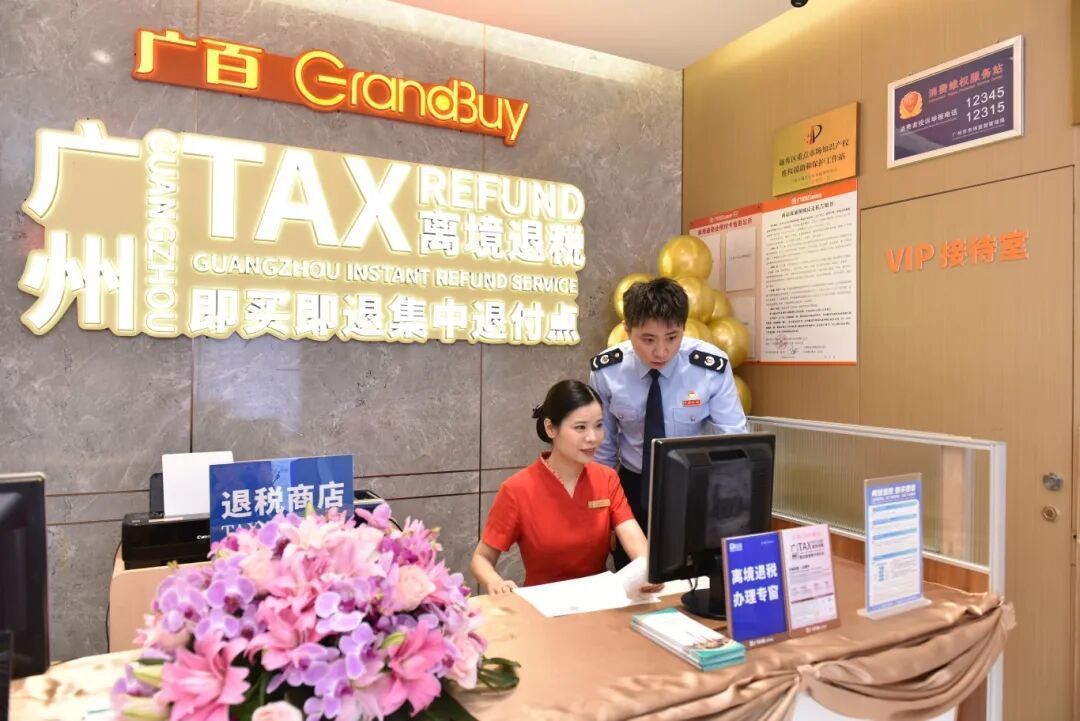 近日,为进一步便利境外旅客离境退税,税务部门联合商务局、银行、广百股份有限公司等,在前期试点发展“即买即退”商店的基础上,在国家级夜间文化和旅游消费集聚区北京路街区推出“即买即退”集中退付点,实现了“全城离境退税、市内一点通办”的服务模式,这是越秀区第一个市内集中退付点。