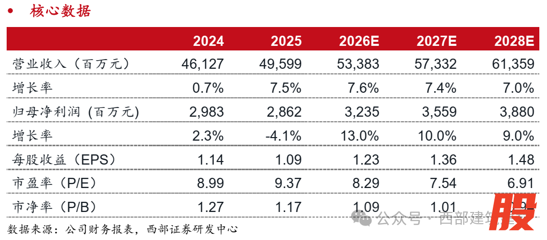 ● 投资建议:我们预计公司26-28年归母净利润分别为32.35、35.59、38.80亿元,EPS分别为1.23、1.36、1.48元,维持“买入”评级。